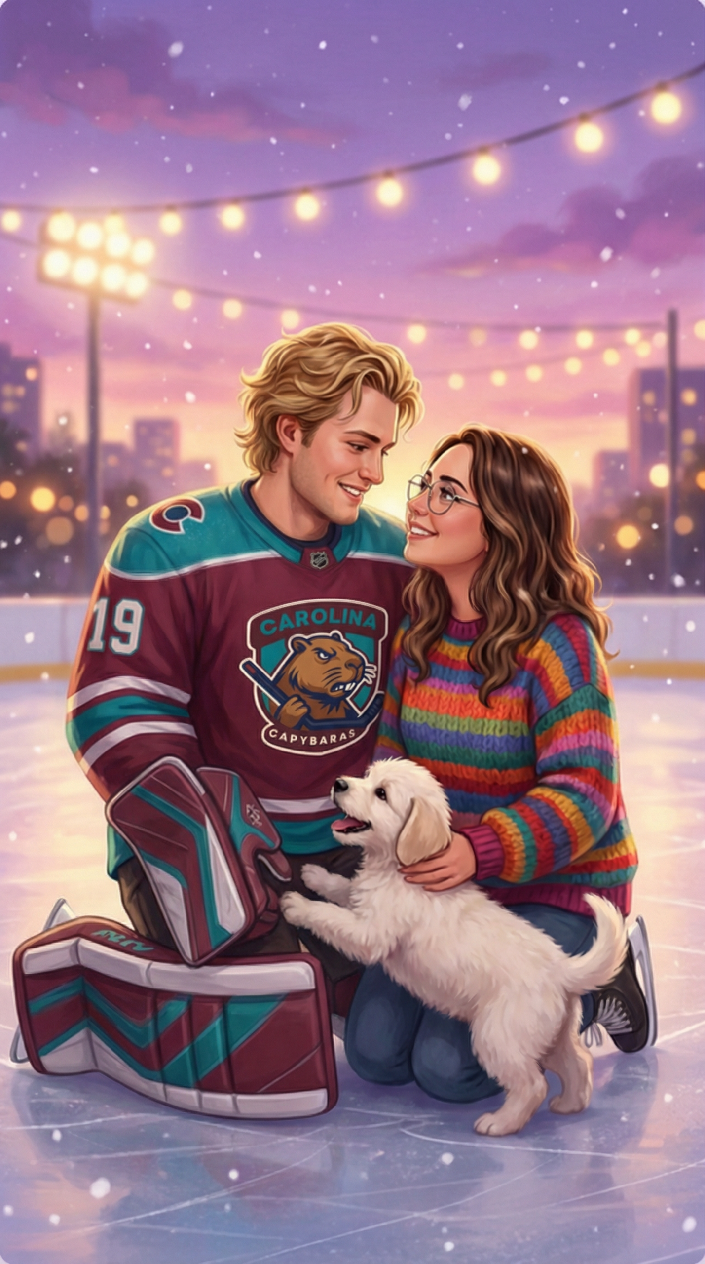 Amaya siempre ha tenido claro que los animales son más sencillos que las personas. Como veterinaria en Raleigh y voluntaria en varias protectoras, su vida gira en torno a rescates, peludos abandonados y demasiado trabajo. Lo que no esperaba era cruzarse constantemente con Riley Gauthier, el portero de los Carolina Capybaras, cada vez que el equipo colabora con sus campañas solidarias. Detrás de la máscara en el hielo y de su sonrisa fácil, Amaya intuye un chico que no sabe muy bien qué hacer con su propio corazón.